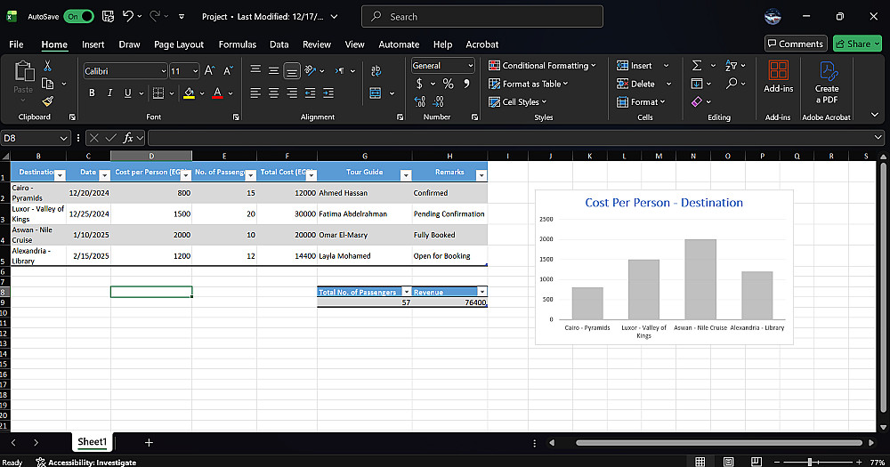 ملف اكسيل لتنظيم وادارة بيانات المسجلين في رحلة تحت ادارة شركة رحلات