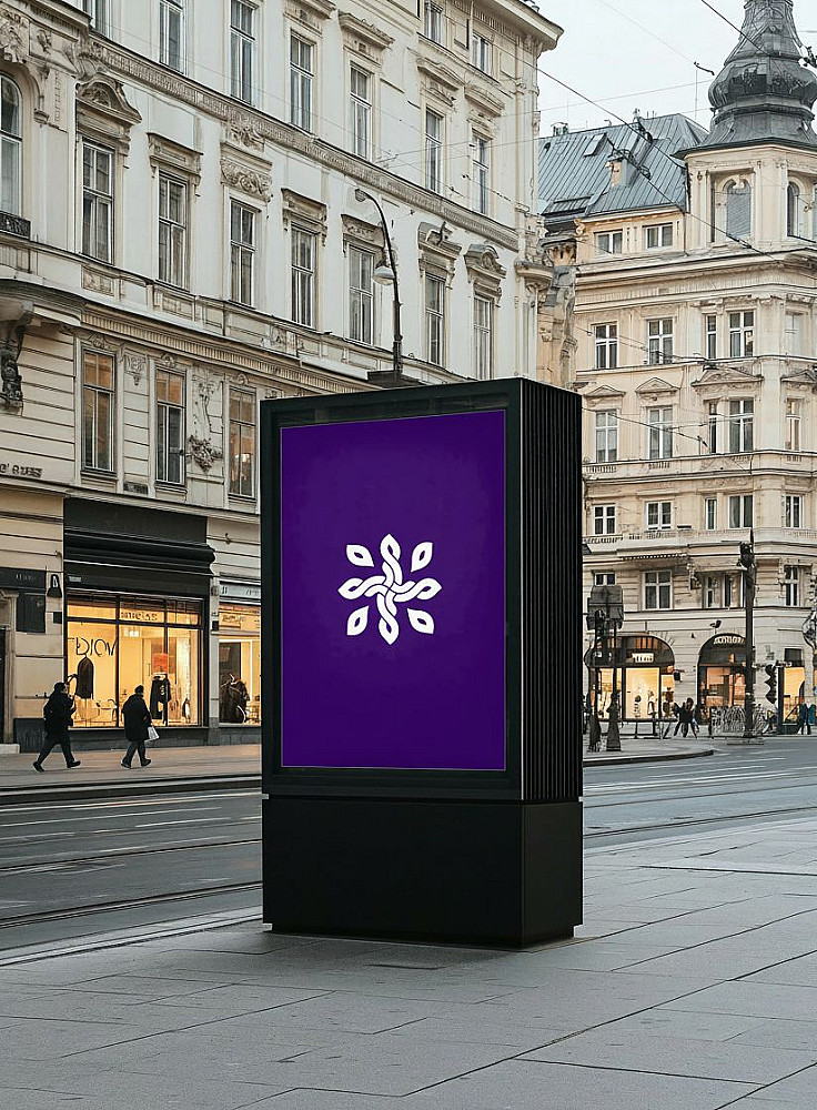 تركيب الشعار على مجموعة من النماذج (مثل لابتوب، ورقيات، أكياس، لافتات، وواجهات منتجات).