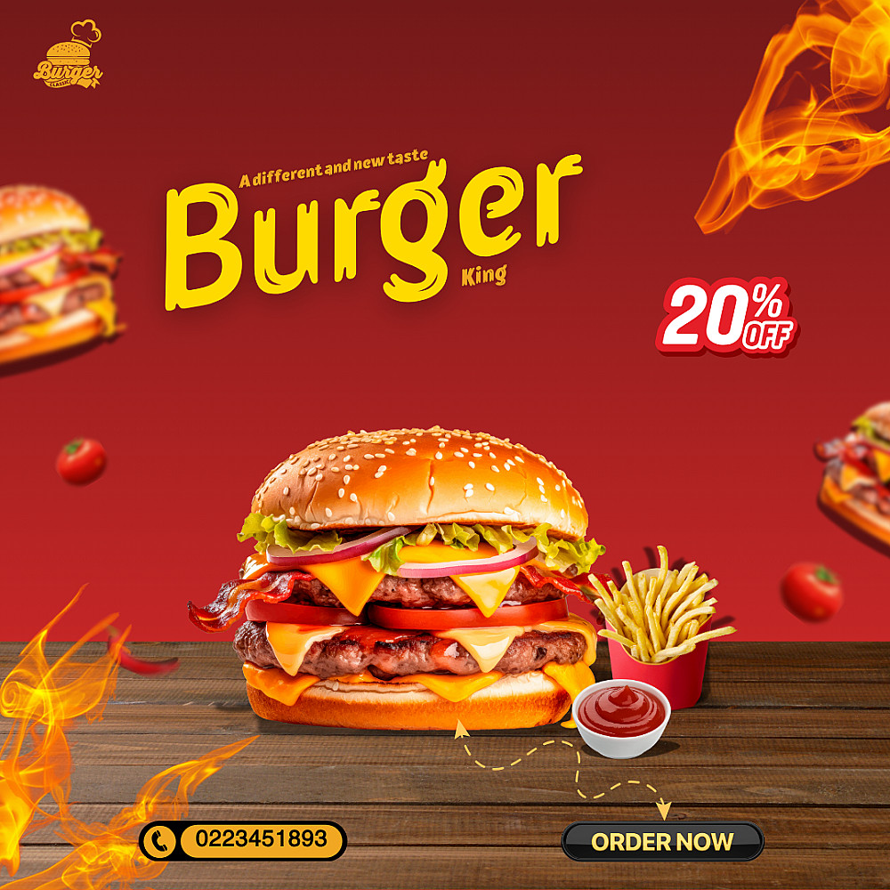 *أقدّم تصميم منشورات احترافية للمطاعم، بجودة عالية وبأسلوب بصري جذاب يساعدك على إبراز هويتك وجذب العملاء على السوشيال ميديا.