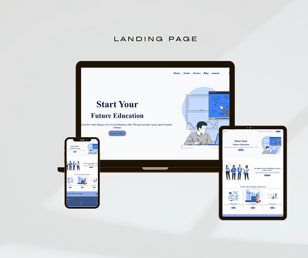 سأقوم بتصميم صفحة هبوط احترافية تعرض فكرة منصتك أو مشروعك التعليمي بطريقة واضحة وجذابة، مع التركيز على إبراز الخدمات والمحتوى الأساسي بشكل يُحفّز الزائر على التسجيل أو التفاعل.
