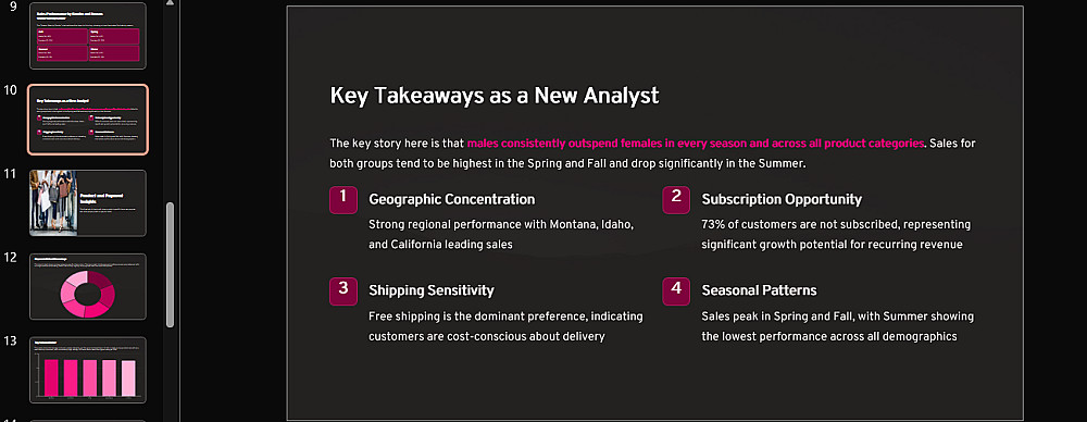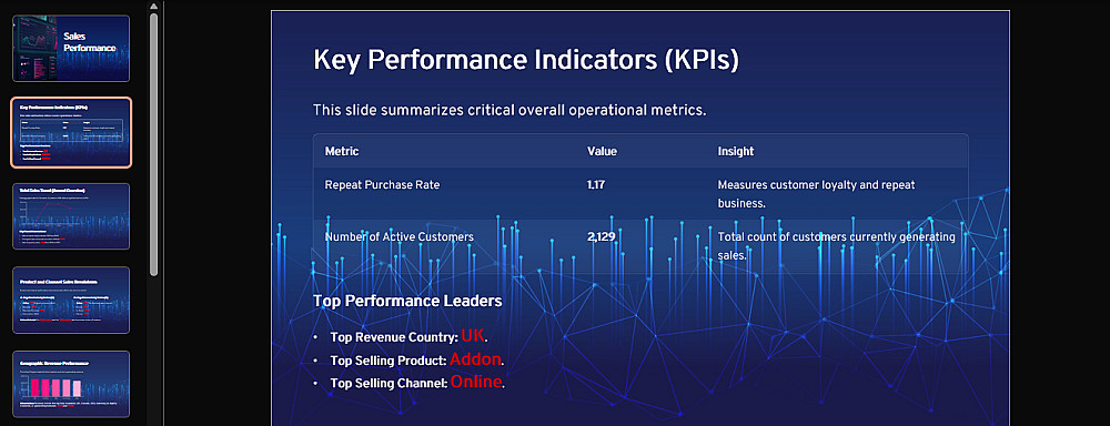 كما سأقوم بتصميم Presentation مهنية لعرض التحليل بطريقة سهلة ومفهومة، تشمل: