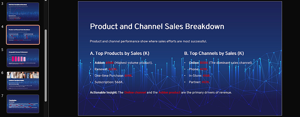 عرض النتائج الرئيسية (Key Findings) والإنسايتس المستخلصة.
