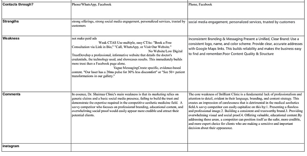 سأقوم بإعداد تحليل شامل للمنافسين (Competitor Analysis) يوضح لك الصورة الكاملة عن وضعك في السوق، ويكشف نقاط القوة والضعف لدى منافسيك، والفرص التي يمكنك استغلالها لتطوير عملك وزيادة مبيعاتك.
