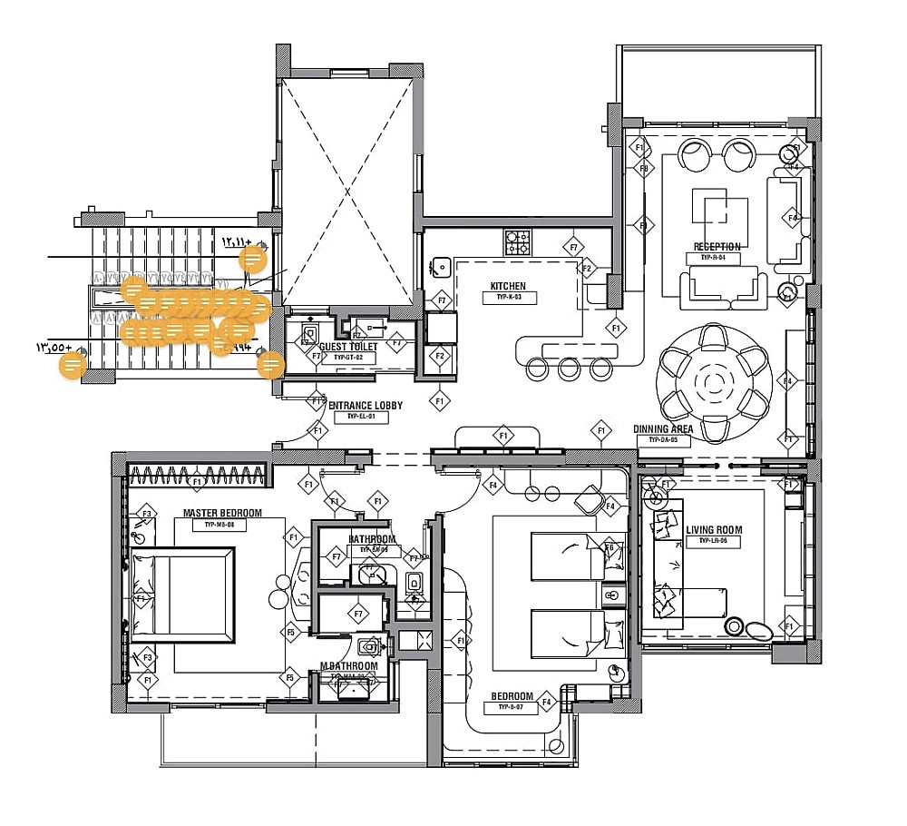 سيتم تسليم ملف كامل يحتوي على لوح المعماري للوحدة بالإضافة للوحة الفرش ولوحة الاضائة ولوحة الأعمال الصحية