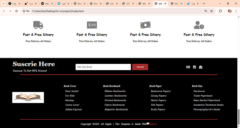 HTML5 – CSS3 – Bootstrap – JavaScript لكل صفحه 5$داخل الصفحه عدد اقسام حسب التصميمم