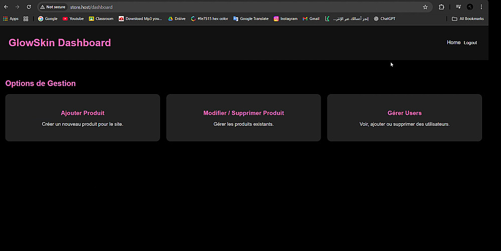 يحتوي على جميع الصفحات الأساسية لعرض المنتجات وإدارة المستخدمين.