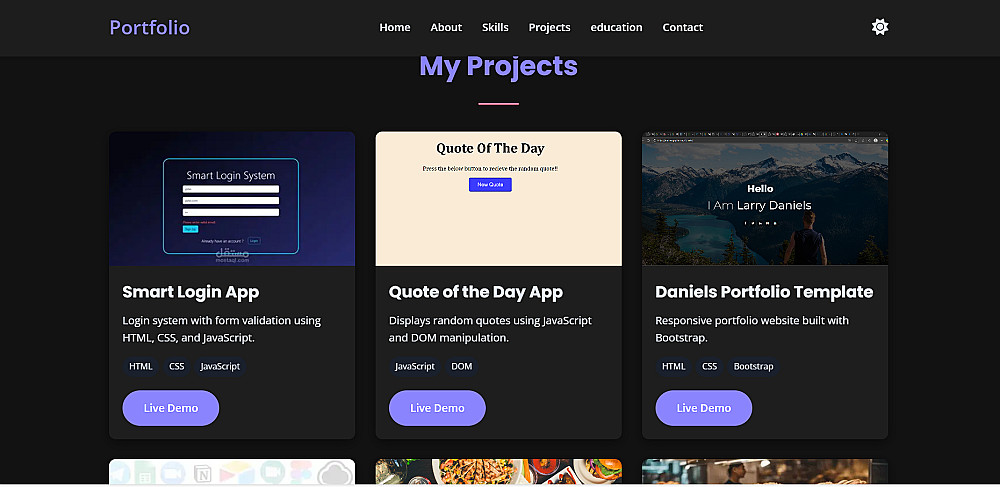 أقدّم لك خدمة تصميم وتطوير بورتفوليو شخصي احترافي باستخدام HTML وCSS وJavaScript وBootstrap، بتصميم عصري ومتجاوب يعرض بياناتك ومشاريعك بطريقة منظمة وجذابة.