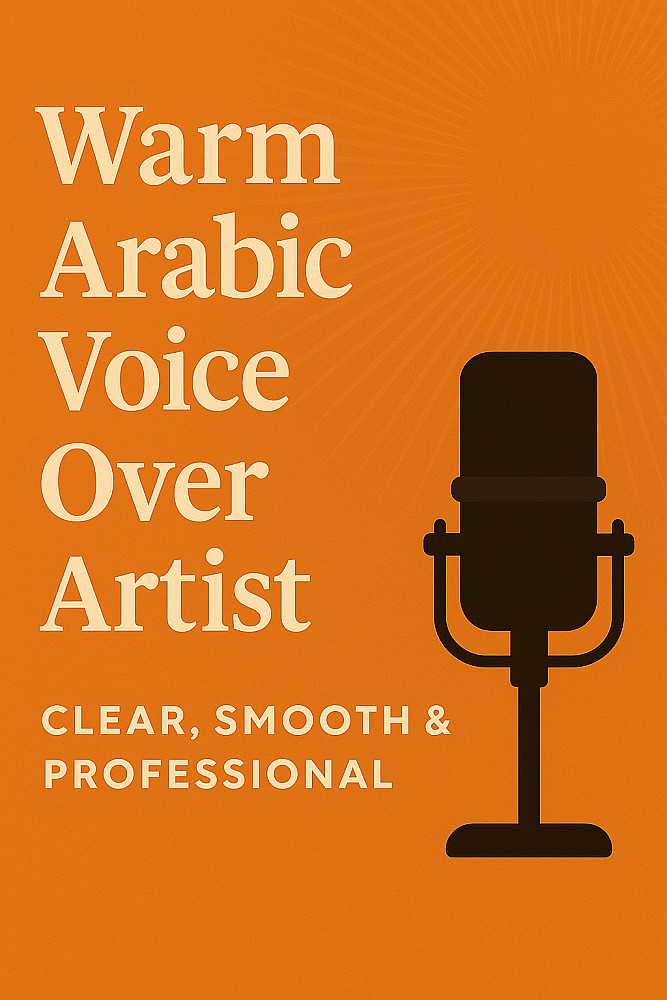 أقدّم خدمة تسجيل تعليق صوتي باللغة العربية بنبرة واضحة وهادئة، مناسبة للإعلانات، المقاطع التعريفية، الرد الآلي، والمحتوى السمعي المتنوع. يتم التسليم بجودة عالية وبصيغة الصوت التي تفضلها