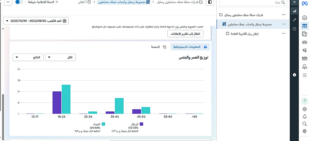 تنفيذ حملات مبيعات، عملاء محتملين، زيارات، تفاعل، مشاهدة فيديو، أو رسائل.