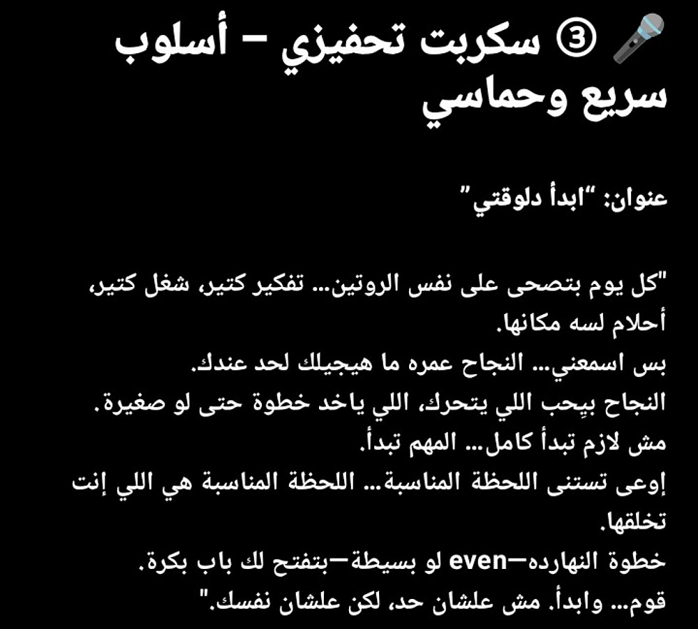 أنا هنا لمساعدتك في كتابة سكربت احترافي مكون من 1000- 2000 كلمة مبني على فهم عميق لأسلوب السرد، وجذب الانتباه، وترتيب الأفكار بشكل يجعل محتواك يظهر بأفضل صورة ممكنة