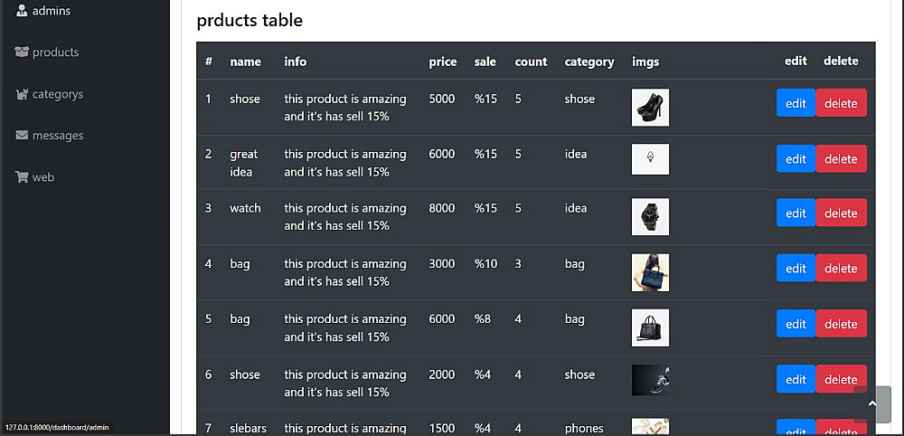 عرض جميع المنتجات المضافة مع إمكانية تعديلها أو حذفها.
