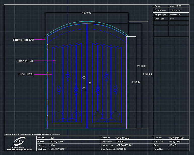 رسم اوتوكاد للأبواب المقاومة للحريق والأبواب المعدنية والسلالم والهاندريل.