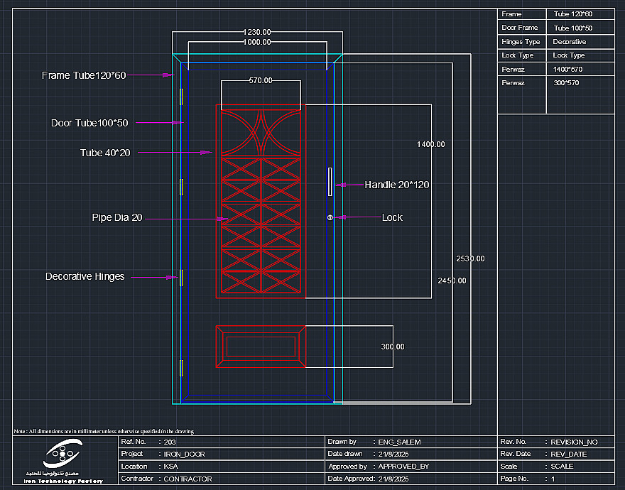 تصميم الأبواب المقاومة للحريق والأبواب المعدنية والسلالم والهاندريل.