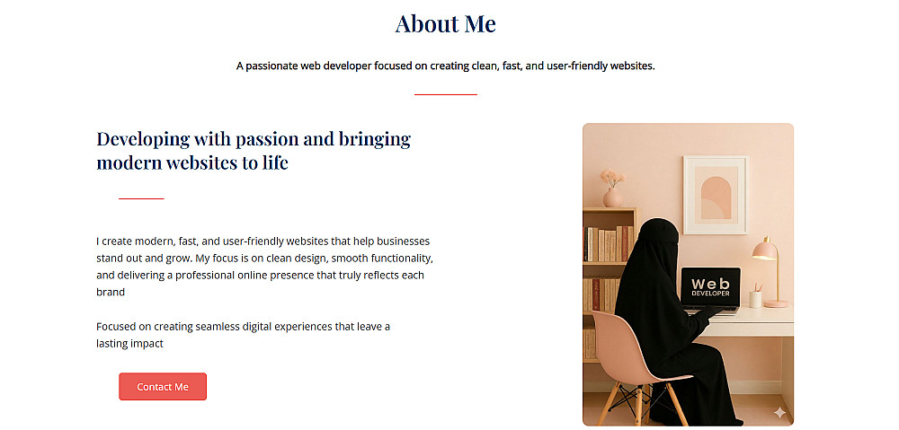 لأن هدفي ليس إنشاء موقع فقط، بل تقديم بورتفوليو يعزز حضورك المهني، يجذب العملاء المحتملين، ويزيد فرصك في الحصول على الوظائف والمشاريع بشكل احترافي وواضح