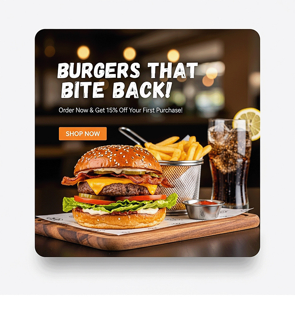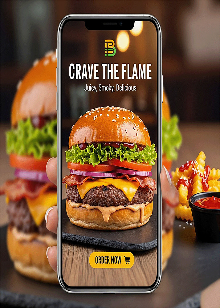 تصميم إعلان برجر احترافي وجذاب وجاهز للنشر على وسائل التواصل الاجتماعي.