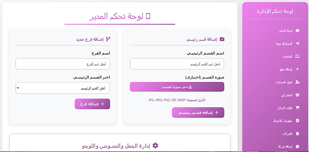 إدارة المنتجات (إضافة – تعديل – حذف).