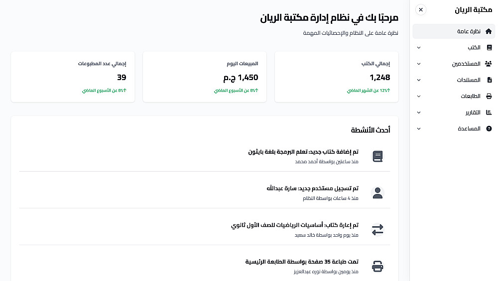 أقوم ببرمجة وتصميم لوحة إدارة كاملة ومخصصة لأي نشاط تجاري أو طبي أو إداري مع نظام سهل الاستخدام وسريع يناسب احتياجاتك مهما كان نوع شركتك.