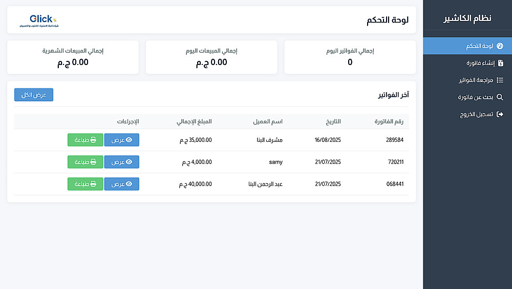 ٧- لوحة تحكم تفاعلية مع رسوم بيانية وتقارير.