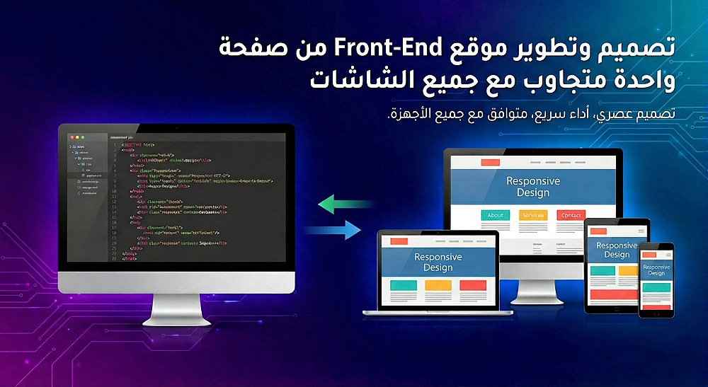 تطوير موقع Front-End من صفحة واحدة متجاوب مع جميع الشاشات