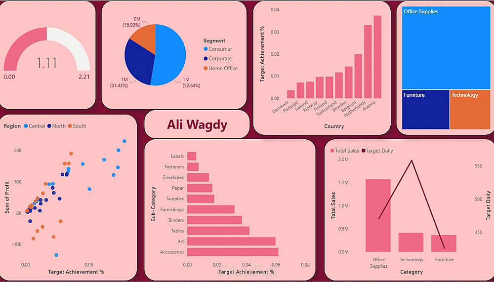 تشمل كل لوحة تحكم ما بين (4 إلى 6) رسومات بيانية ذكية (Charts) مرتبطة بفلاتر (Slicers) للتحكم الكامل في العرض.