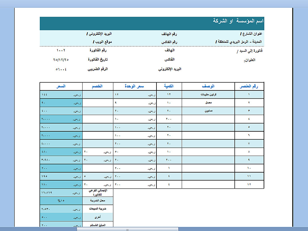 **ملاحظة: النموذج عبارة عن قالب تصميمي وتنظيمي للمبيعات، ولا يشمل الربط التقني بالأنظمة الحكومية أو رموز QR