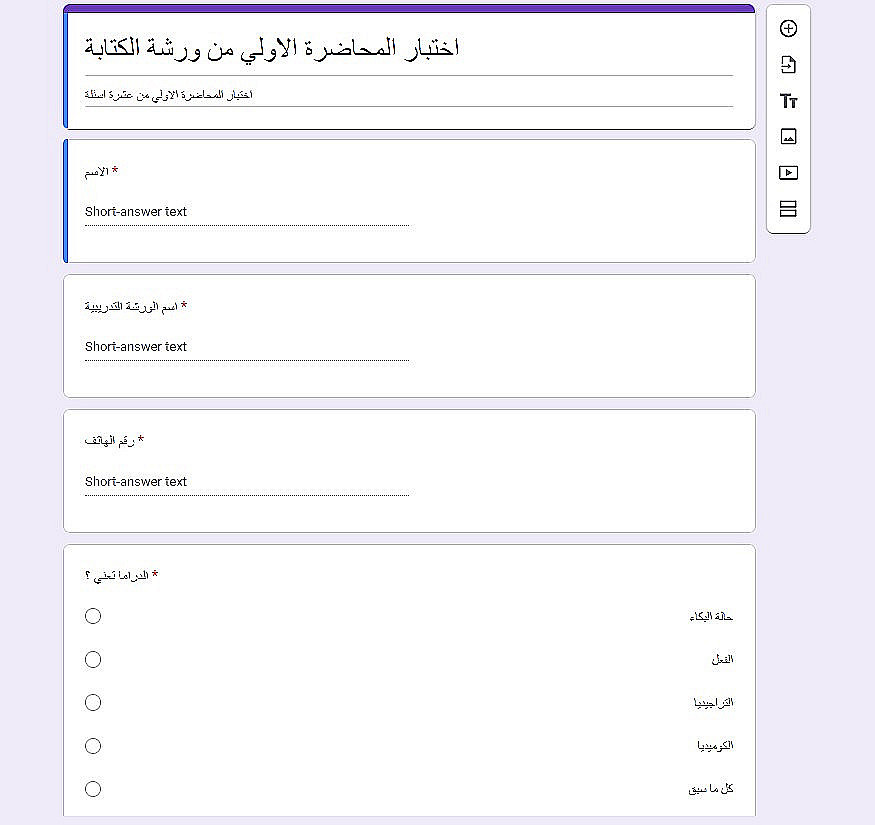 - أبنى لك نموذج متكامل سواء إمتحان، إستبيان، أو إستمارة تسجيل بيانات.