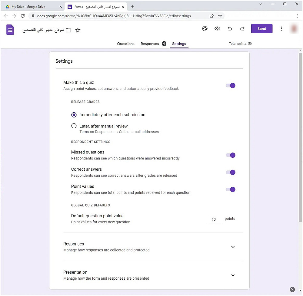 - النموذج يكون جاهز وقابل للمشاركة مع الجميع بمجرد إرسال الرابط.