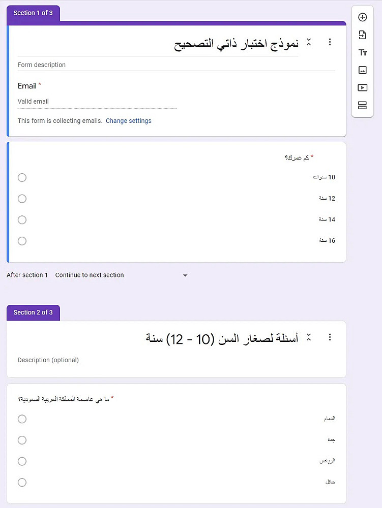 - سيتم عمل وتحديد 15 سؤال للنموذج الواحد على الأقل.