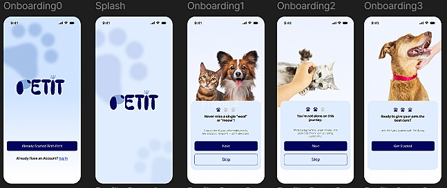 في الخدمة دي هصمملك 3 screens لتطبيق الحيوانات بجودة عالية، منظمة ومتناسقة بصريًا.