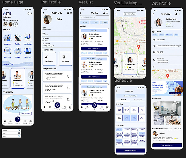 بستخدم أدوات زي Figma و Photoshop عشان أقدّم تصميم يخدم فكرة التطبيق ويوصل إحساس الود والراحة اللي تناسب عالم الحيوانات.