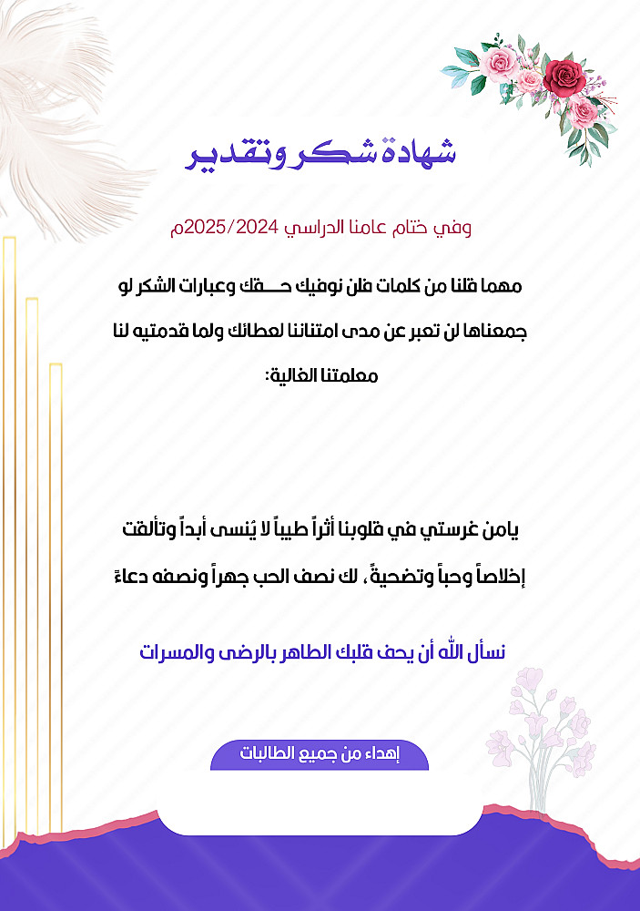 أقدّم خدمة تصميم شهادات شكر وتقدير احترافية تناسب المدارس، المراكز التعليمية، المؤسسات، والفعاليات المختلفة.