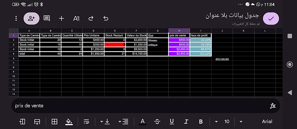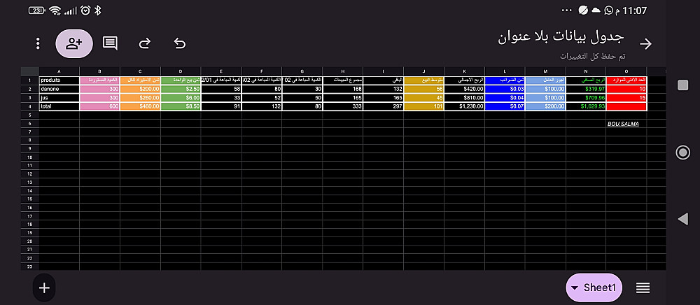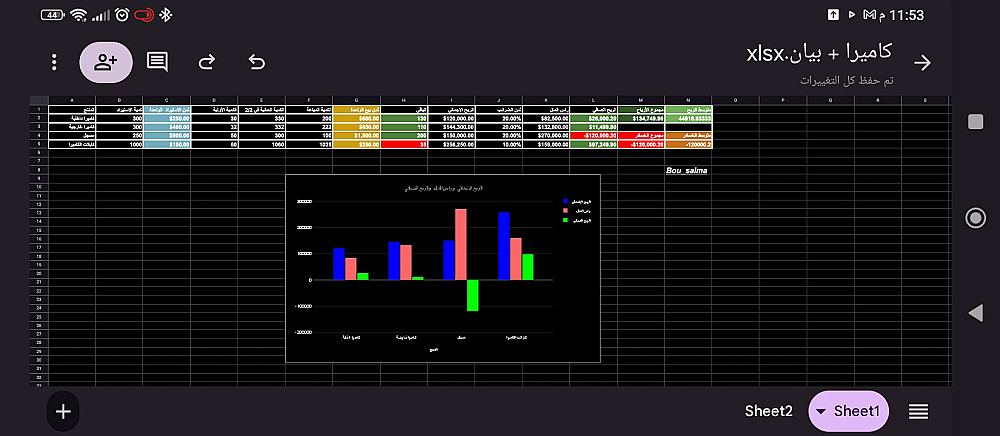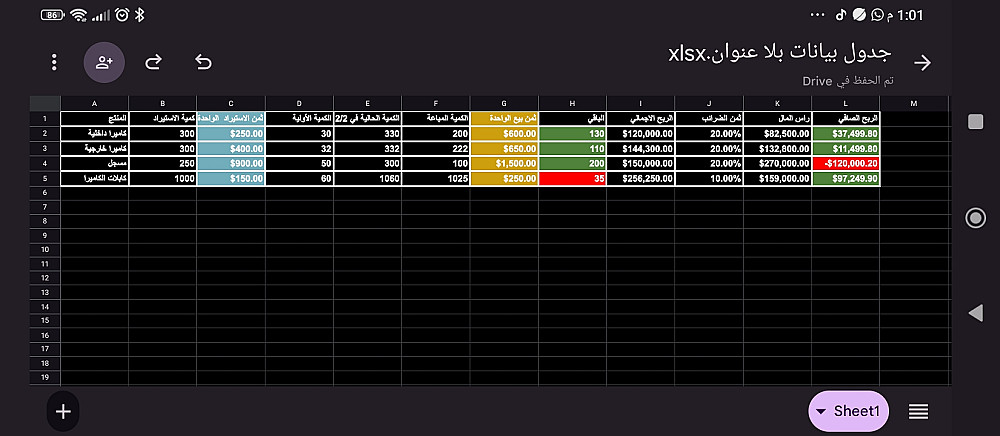 تنظيم وتنسيق الجداول: استخدام الألوان والتنسيقات الشرطية لجعل البيانات سهلة القراءة (مثل نماذج أرباحي وجداول المنتجات).