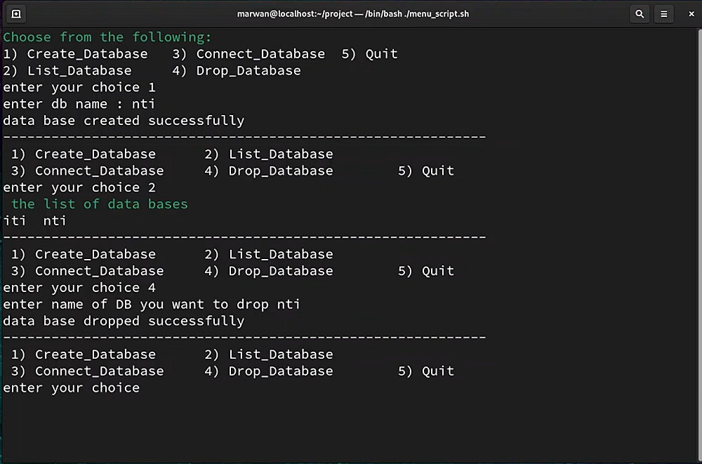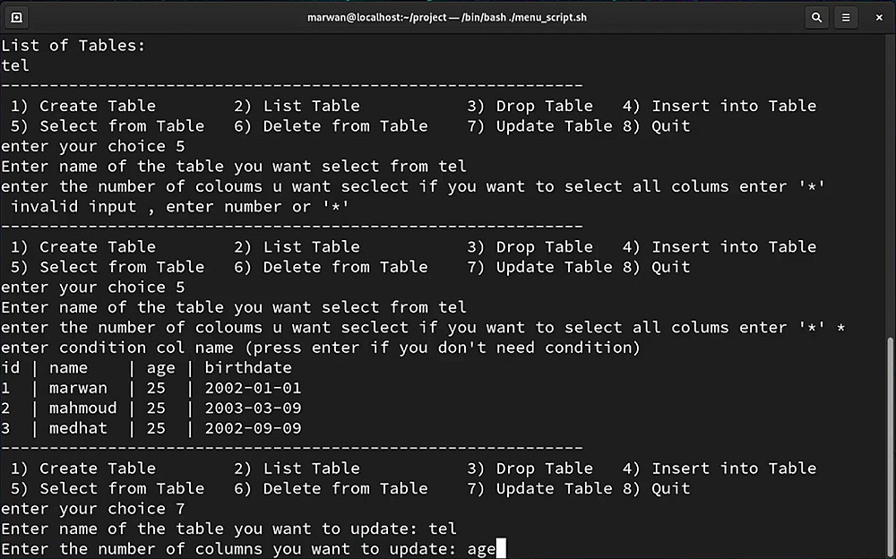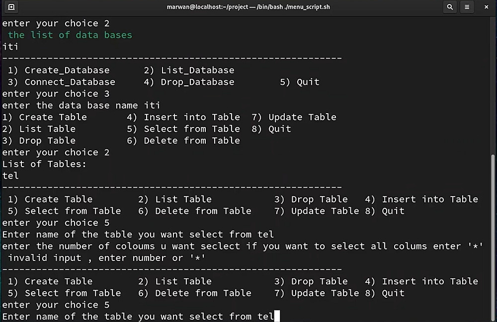 أقوم بتطوير نظام إدارة قواعد بيانات باستخدام Bash Script