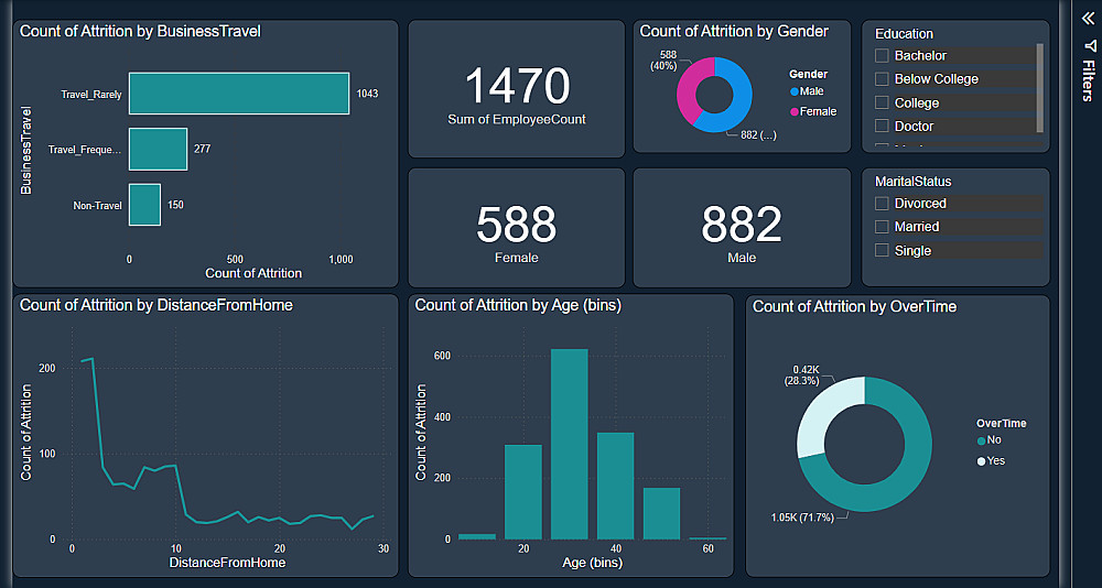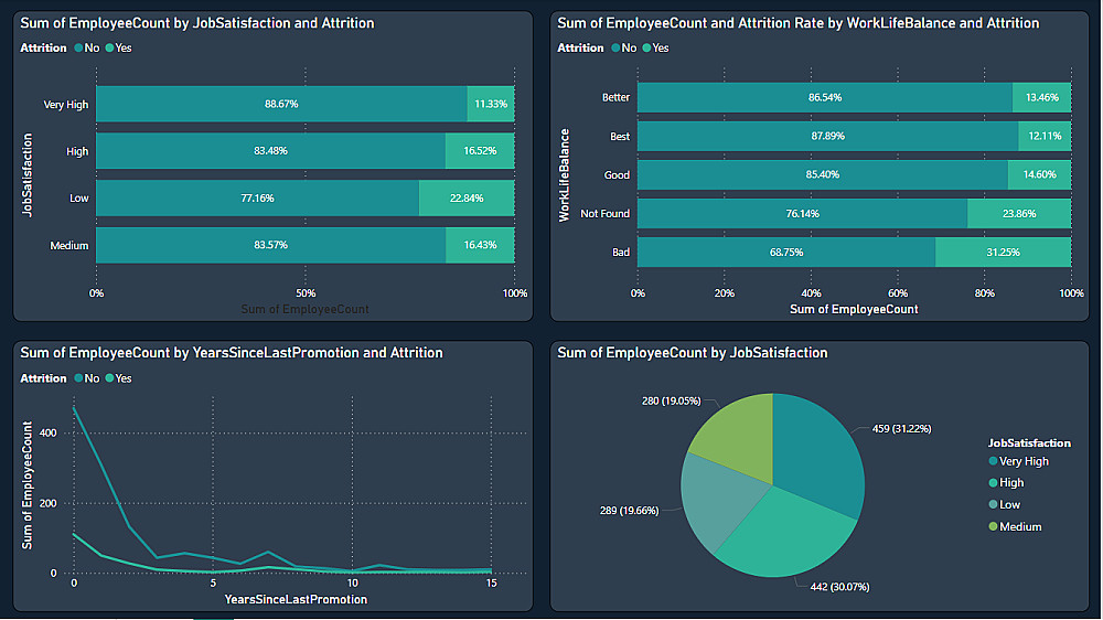 الموارد البشرية (HR): (مثل الصورة المعروضة: معدل الدوران، الأداء، الرواتب).