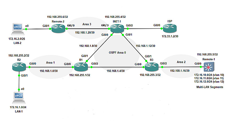بروتوكولات التوجيه: تفعيل التوجيه الثابت (Static Routing) أو بروتوكول بسيط (RIP/Single Area OSPF) لضمان اتصال الشبكة بالكامل.