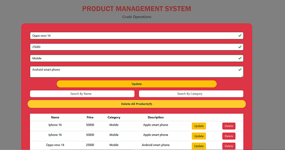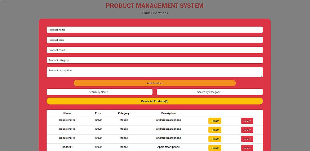 إنشاء نظام إدارة منتجات (Product management CRUDs system)