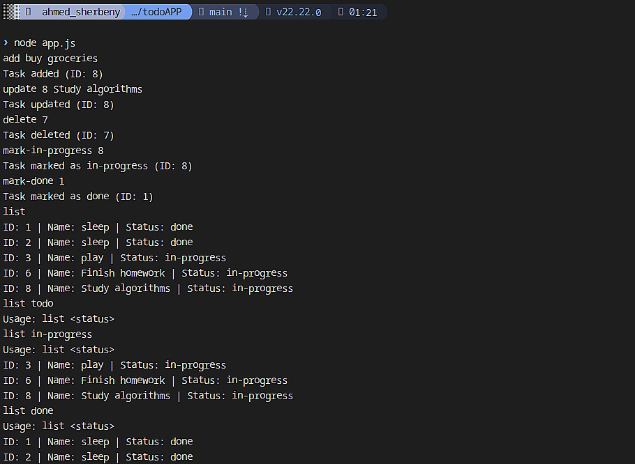 لستة مهام ليومك بnodejs وjson ك قاعدة بيانات