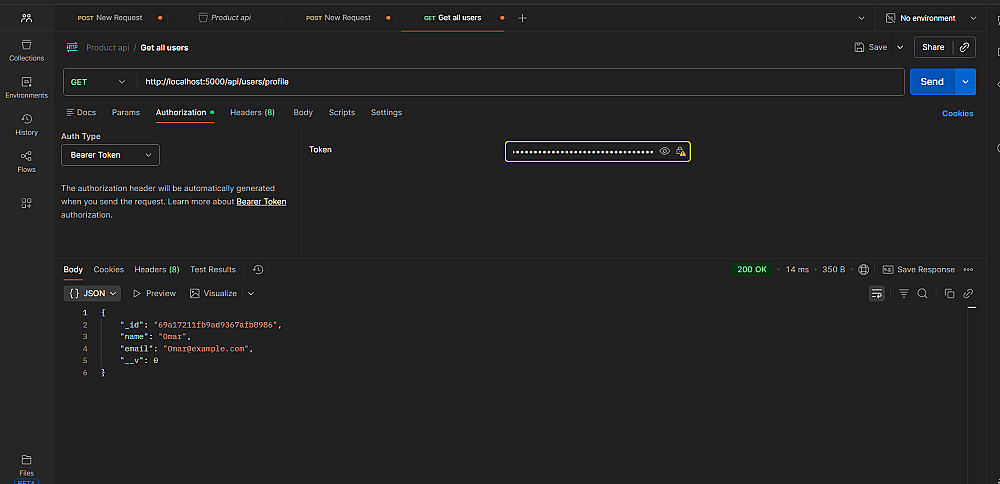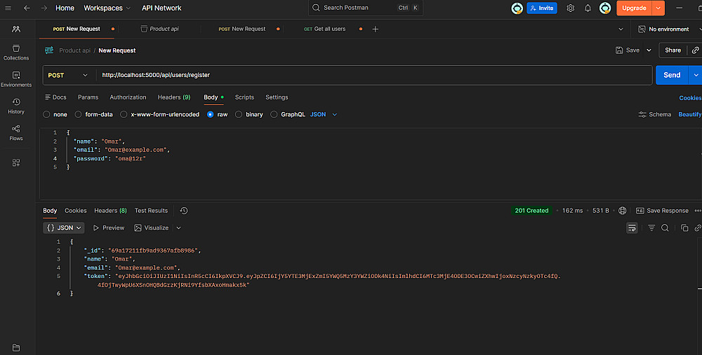 واجهة جاهزة لاختبار جميع وظائف التسجيل والدخول باستخدام Postman.