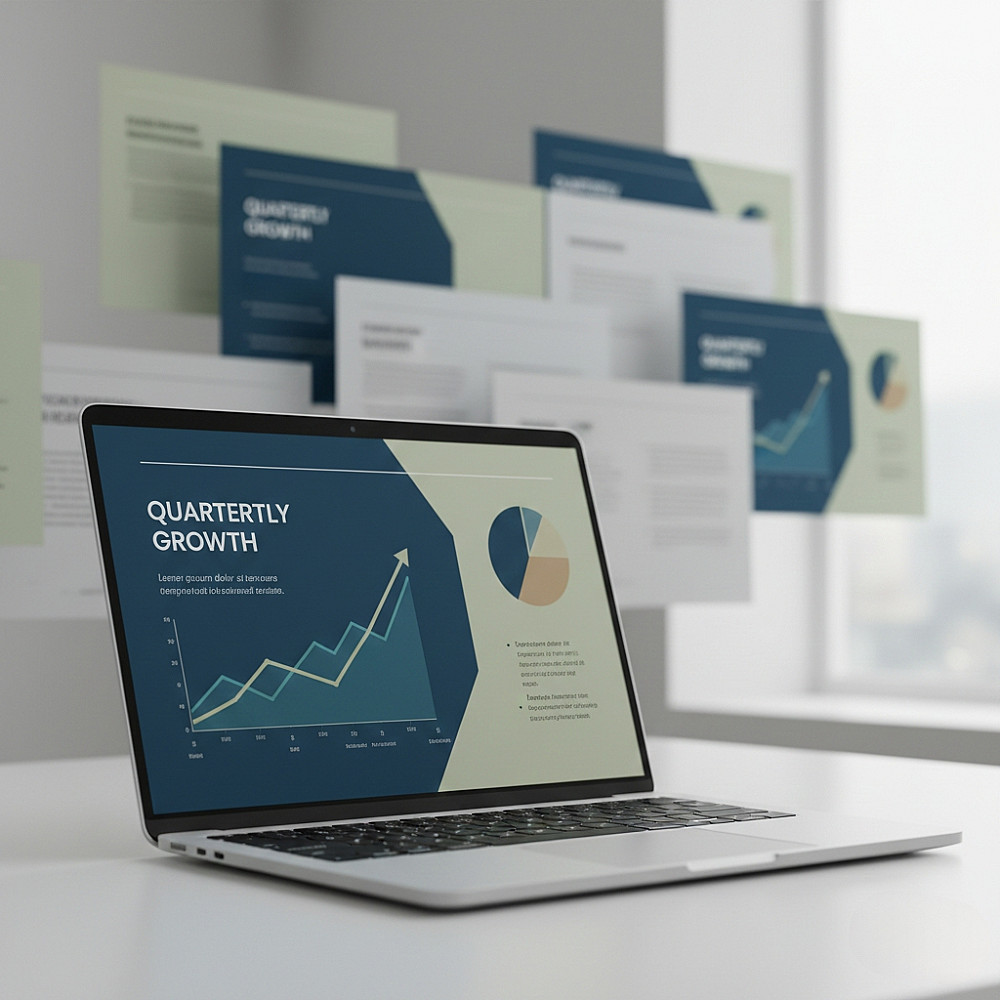 تصميم عروض تقديمية احترافية (Presentations) تحول المعلومات والنصوص إلى محتوى بصري جذاب وسهل الفهم. الخدمة تشمل تنسيق المحتوى، استخدام رسوم بيانية وتوضيحية (Infographics) لتبسيط البيانات، وضمان تناسق الألوان والخطوط مع الهوية البصرية للمشروع أو الشركة. الهدف هو تقديم عرض تقديمي يترك انطباعاً قوياً ويحقق الهدف من التواصل.