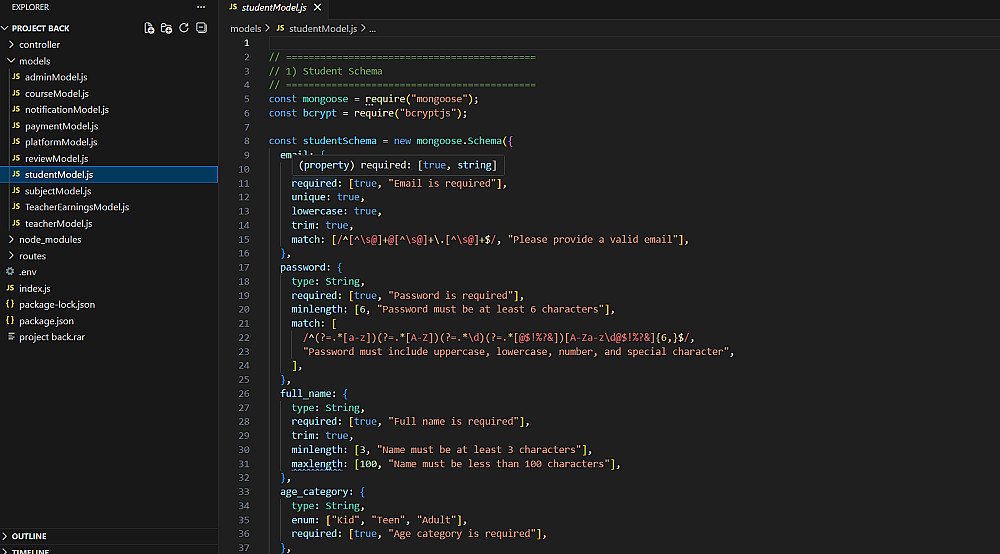 ✔ إنشاء Schemas و Models باستخدام Mongoose