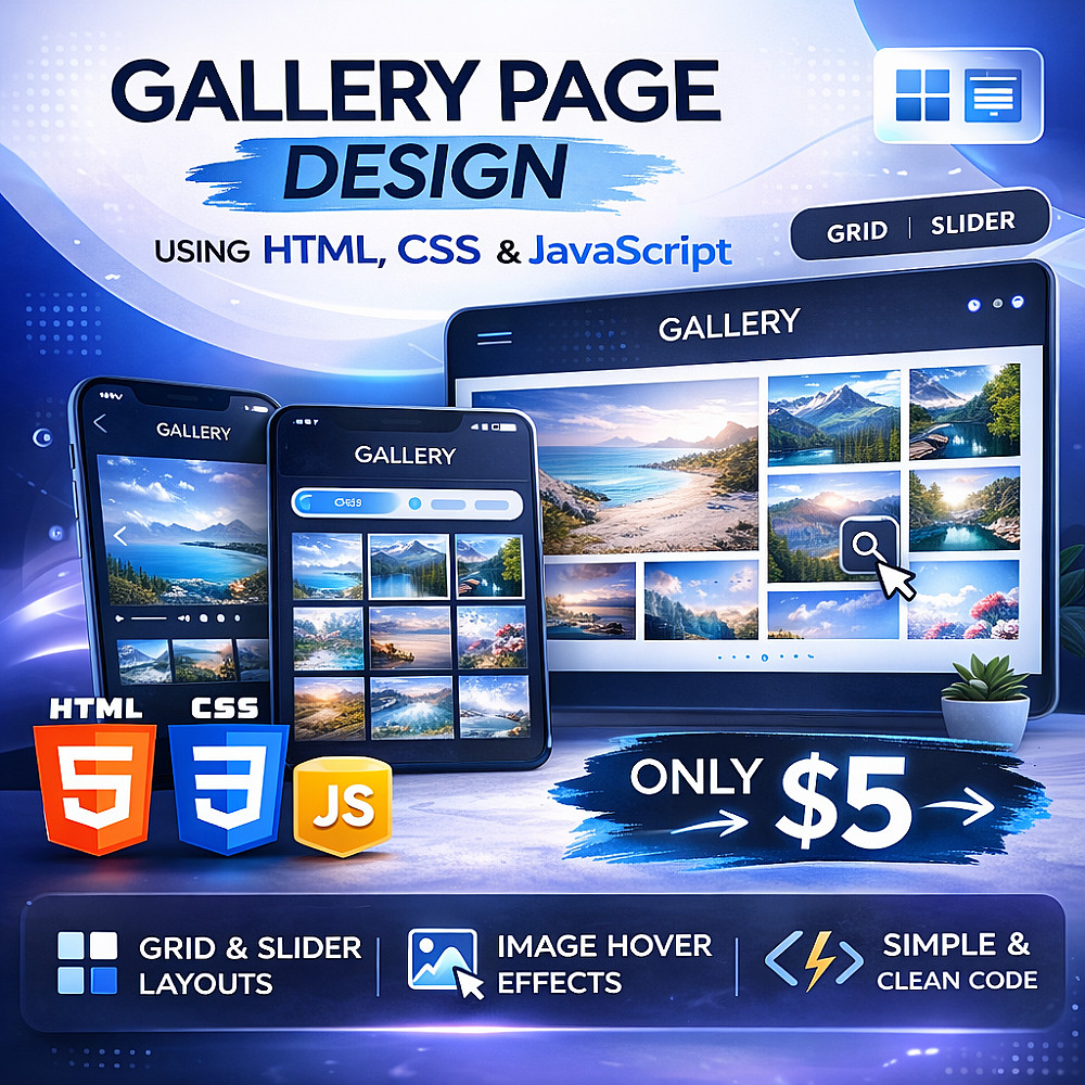 صميم صفحة معرض صور احترافية بـ HTML و CSS و JavaScript