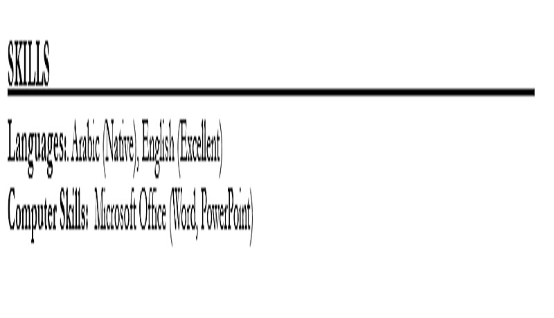 -أقسام منظمة: ملخص – خبرات – مهارات – تعليم – شهادات