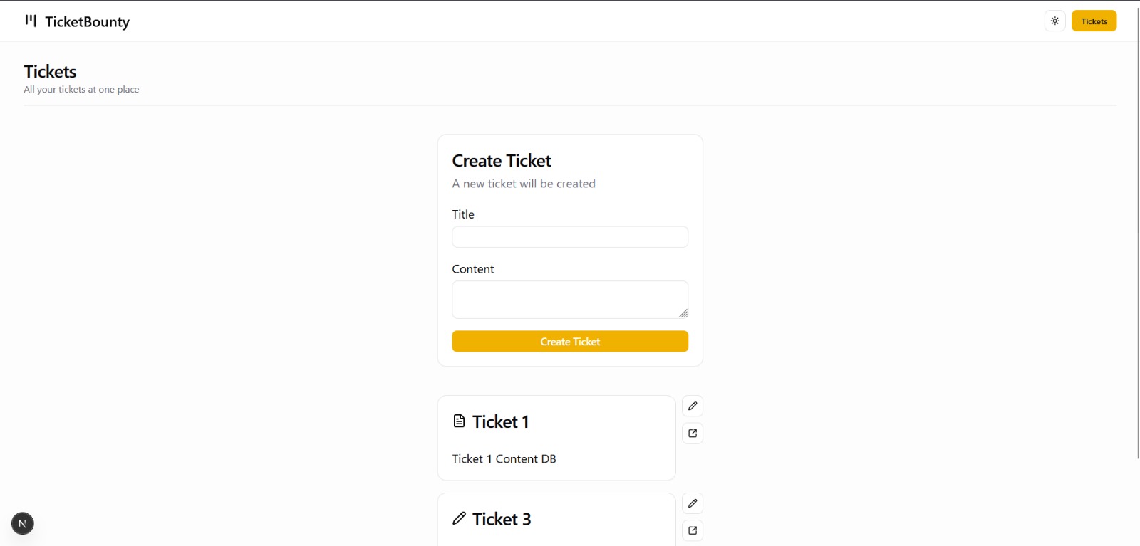 صفحة عرض التذاكر (Tickets List).