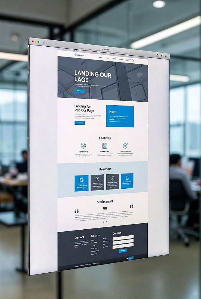 أقسام أساسية: هيدر + هيرو سيكشن + مميزات + شهادات/آراء + نموذج تواصل أو زر Call to Action + فوتر