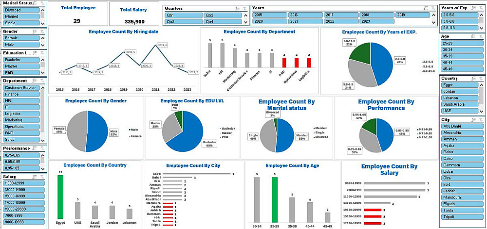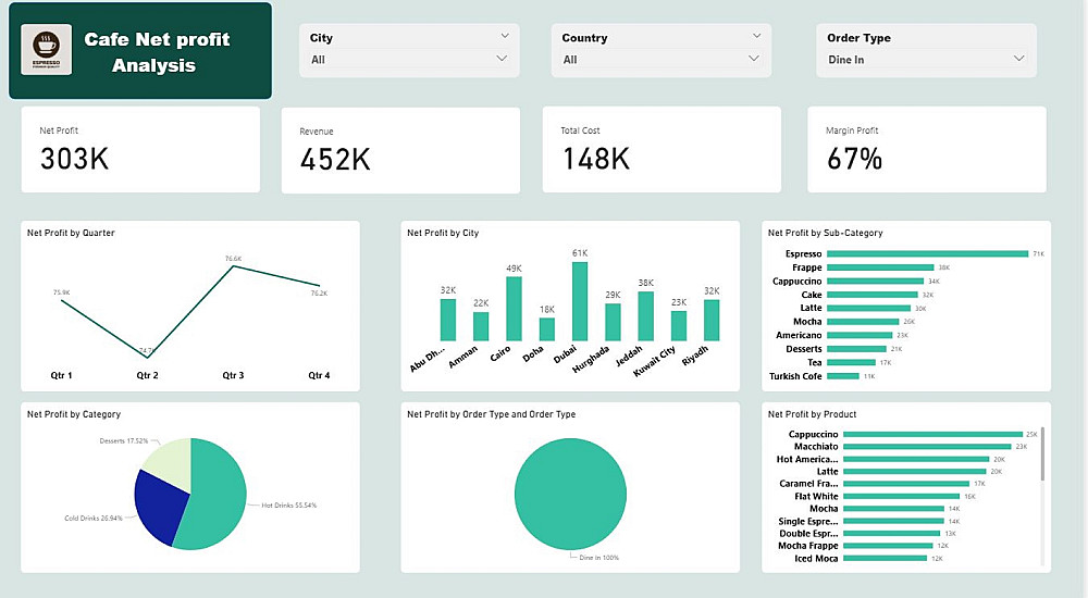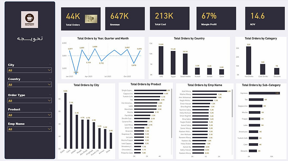 - داش بورد احترافي ومتكامل مكونه من صفحه واحده تفاعلي وأنيق يعرض أهم KPIs .