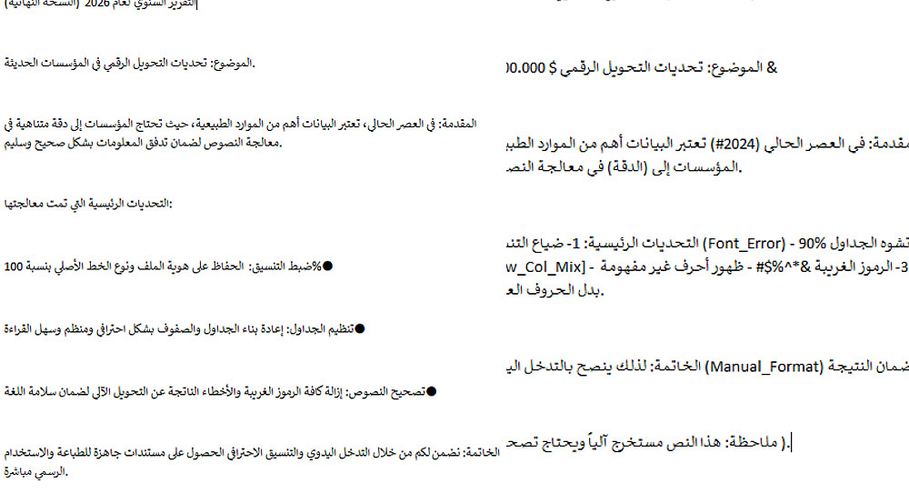 ●الحفاظ على التنسيق الأصلي للملف (الخطوط، الجداول، والفقرات) قدر الإمكان.