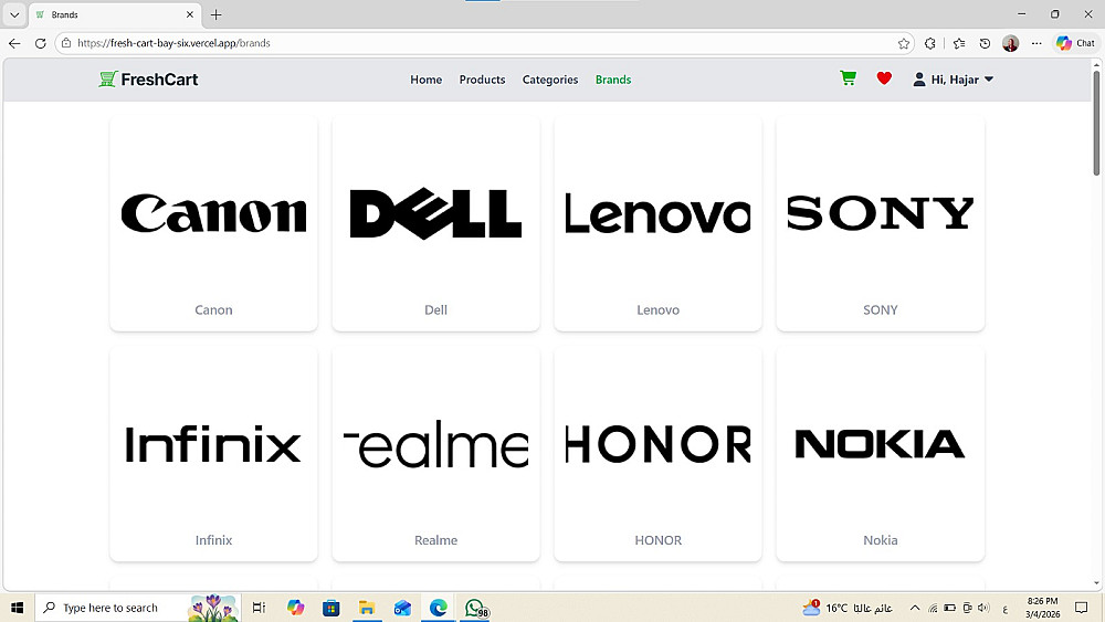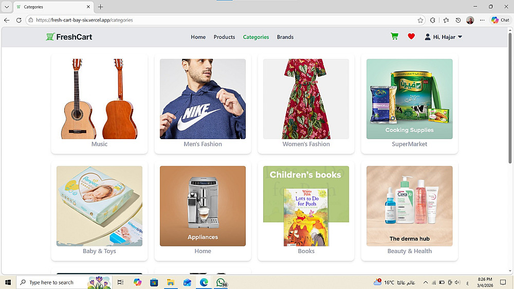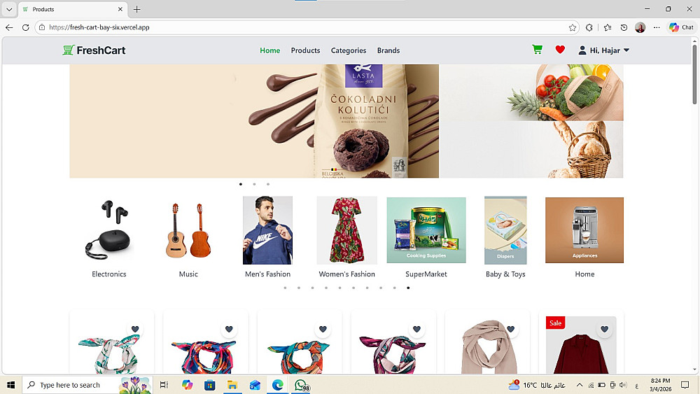 سأقوم بتطوير واجهات متجر إلكتروني (Front-End Web Application) باستخدام React.js يحاكي المتاجر الإلكترونية الحقيقية، مع تصميم عصري وأداء عالي.