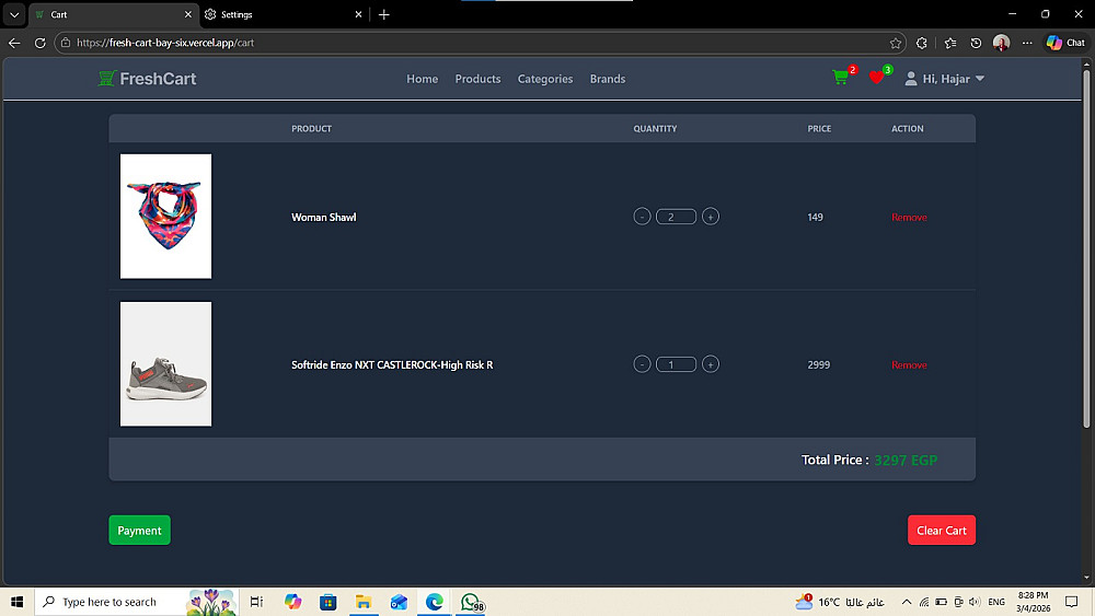 صفحة عربة التسوق (Cart)