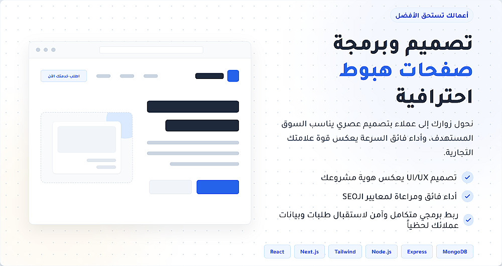 بناء صفحة هبوط (Landing Page) احترافية، عملية، سريعة، ومبنية تقنياً لتخدم أهداف مشروعك مباشرة وتوفر للزائر مساراً واضحاً لاتخاذ الإجراء المطلوب.