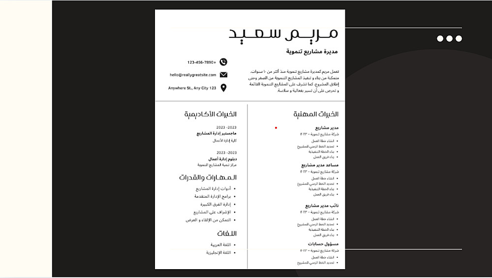 تصميم سيرة ذاتية باللغة العربية والانجليزية بنظام ATS